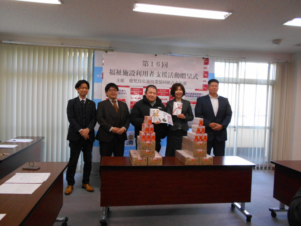 鹿児島県遊技業協同組合青年部会(会長 細山田良一)では、「福祉施設利用者支援活動」を、ヤクルト本社西日本支店を始め、県内に拠点を置く鹿児島ヤクルト販売㈱、鹿児島東部ヤクルト販売㈱及び川内ヤクルト販売㈱の全面的な協力を得て行いました。